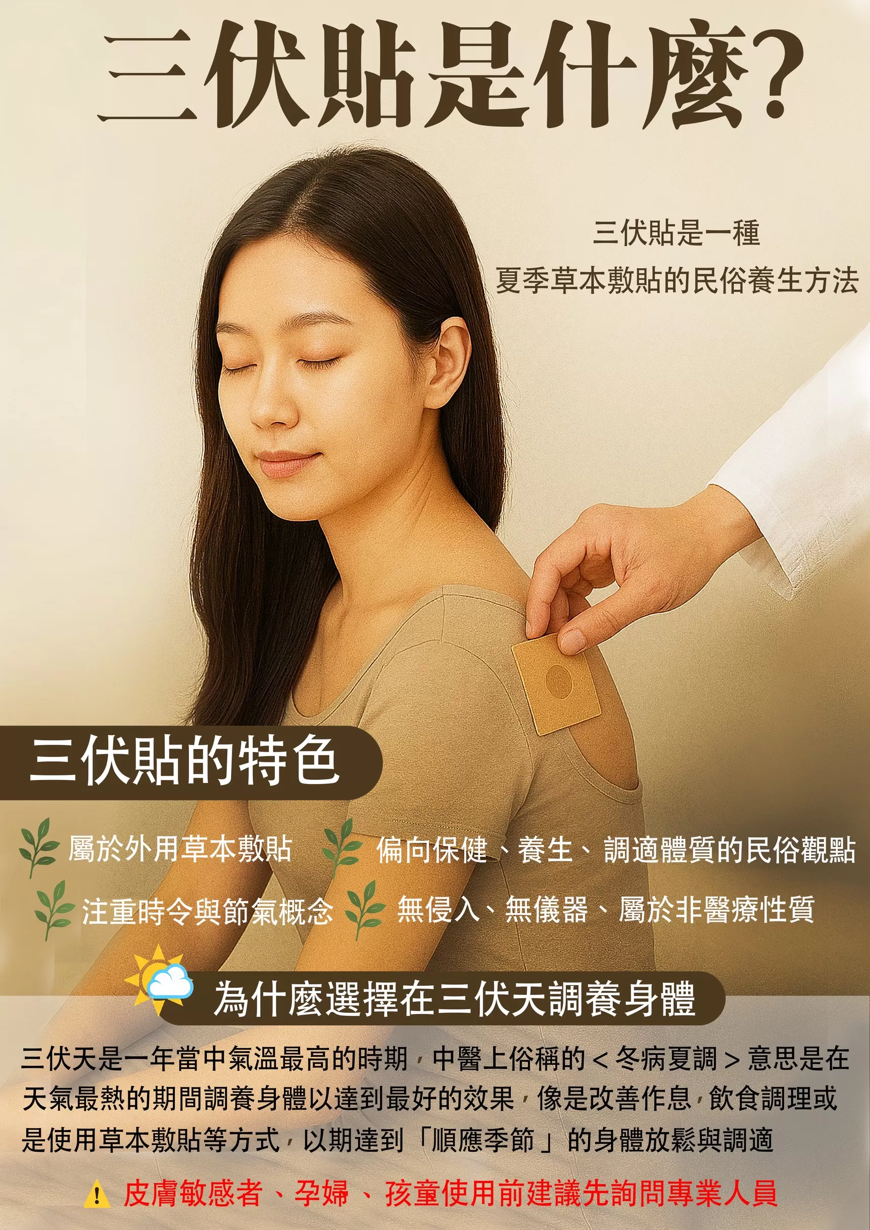 每年約 7/16 ~ 8/24 是傳統上被視為三伏灸的主要時節,