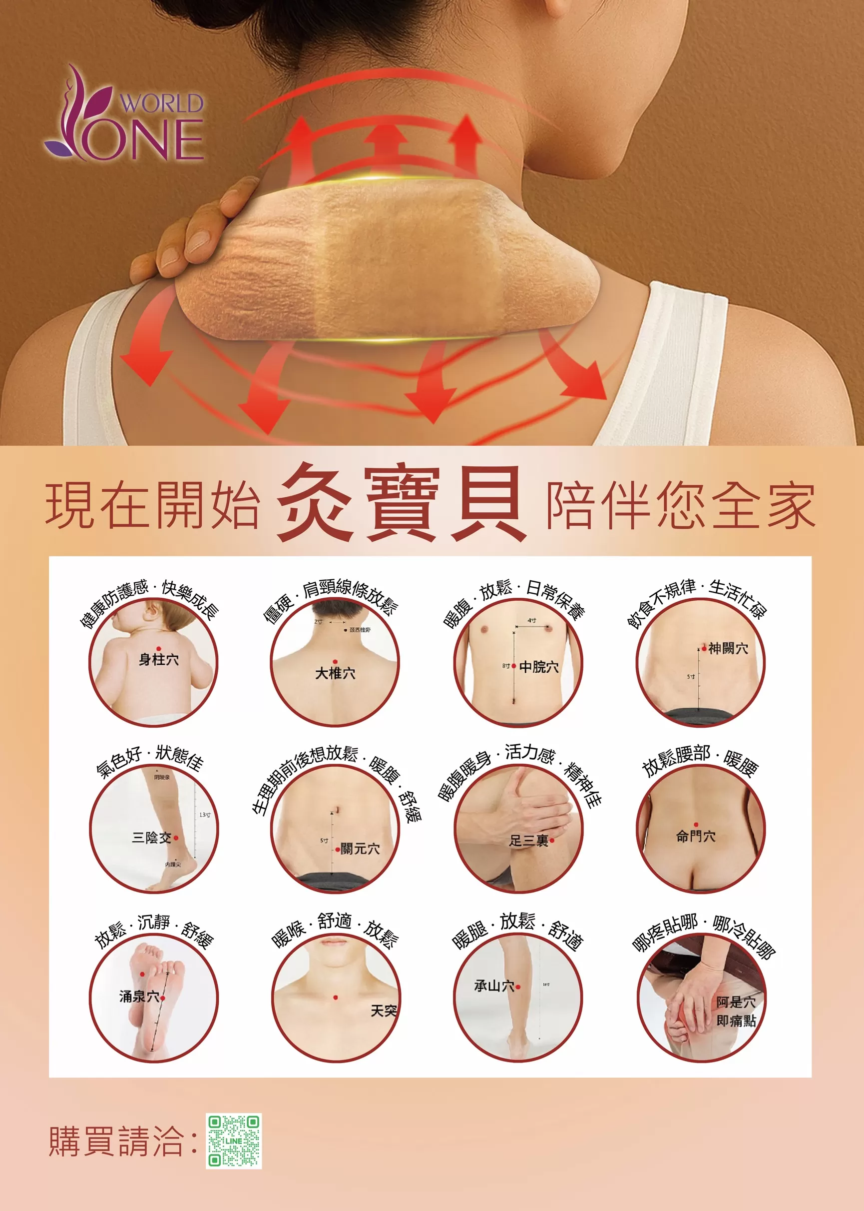 你可以依照身體日常的需要,把灸寶貝貼在: